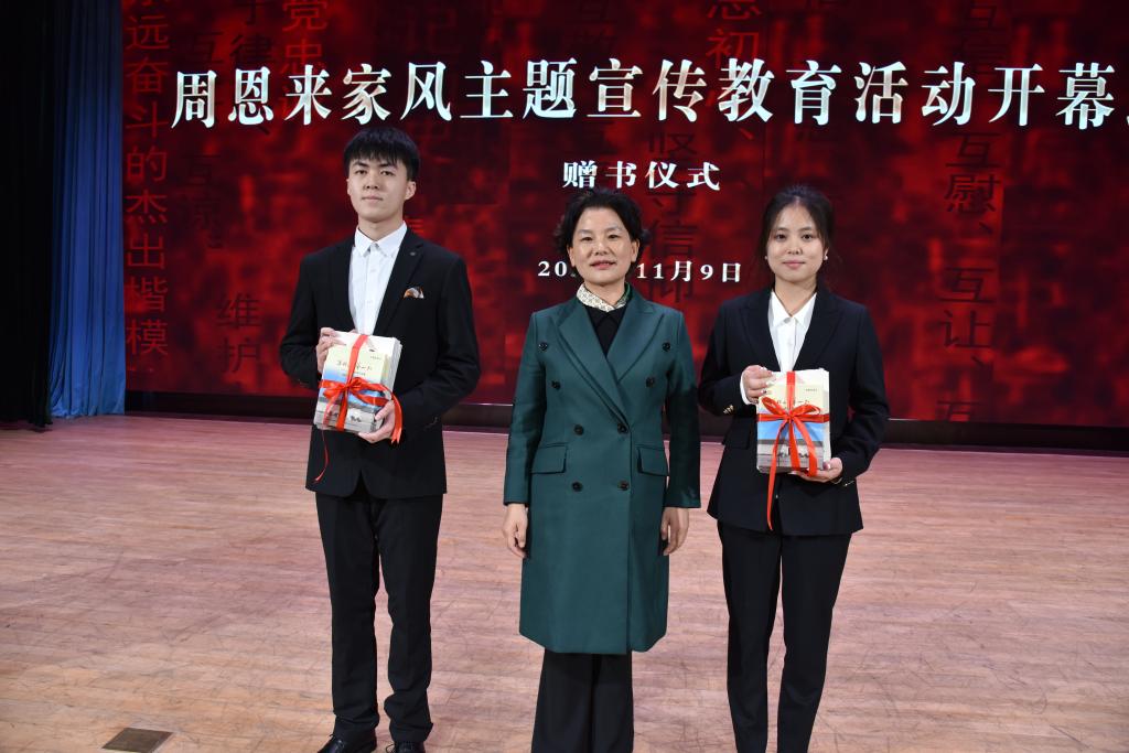 11月9日,以“赓续红色血脉·弘扬家庭美德·培养时代新人”为主题的周恩来家风主题宣传教育活动在我校举办。本次活动由周恩来纪念地管理局和学校共同主办,周恩来纪念馆、周恩来故居管理处、校团委和马克思主义学院共同承办,通过家风图片展览、情景故事会、研讨交流三种形式层层递进展开。学校联合党委常委、副校长顾秀根,联合党委常委、纪委书记崔丽娟,联合党委常委、党委宣传部部长王平出席活动,校团委青年理论学习小组、马克思主义学院全体教师及学生代表共1000余人参与了此次活动。此次活动还得到了中央党史和文献研究院第二研究部青年理论学习小组的大力支持。
