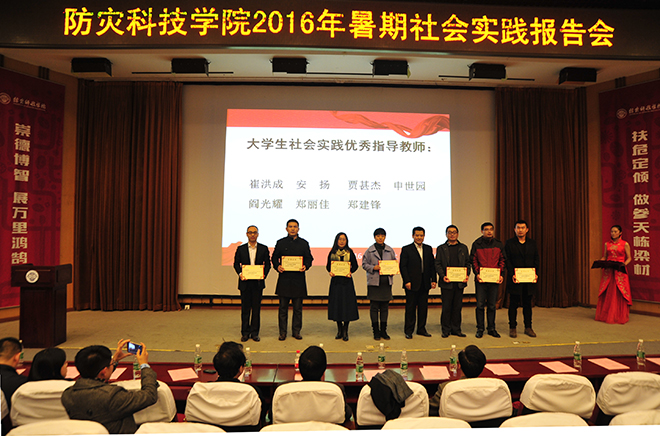 为引导广大学生积极投身社会实践活动,展现防灾学子的风采,我院于2016年12月15日在我校图书馆二楼报告厅举办防灾科技学院2016年大学生暑期社会实践报告会。学院党委书记齐福荣教授,学院党委副书记李军教授、学院各职能部门领导,各系部党总支书记,团总支书记、辅导员老师以及各实践小分队的指导教师了莅临本次报告会,会议由团委副书记阎光耀主持。